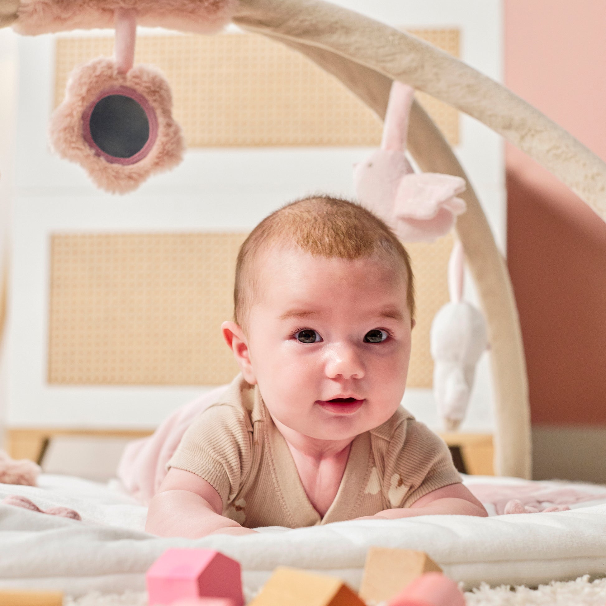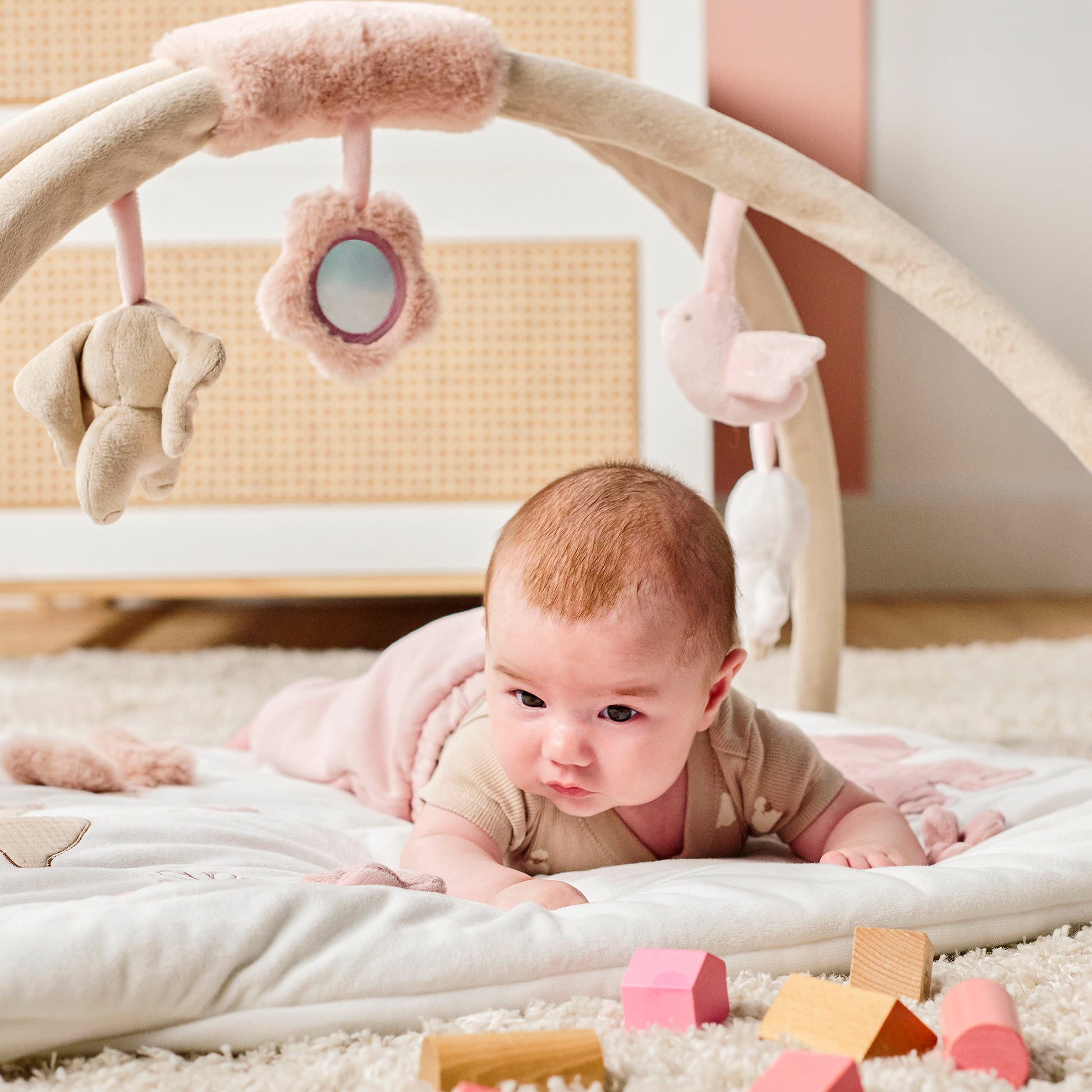 Активната гимнастика с арки на Nattou е истински свят на открития за вашето бебе. Меката и плътна подплата осигурява оптимален комфорт, а сваляемите арки с цветни и забавни играчки приканват малките ръчички да хващат и изследват.