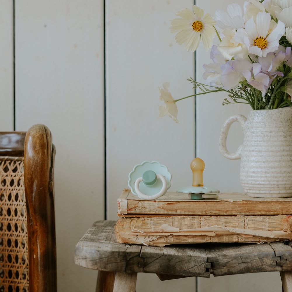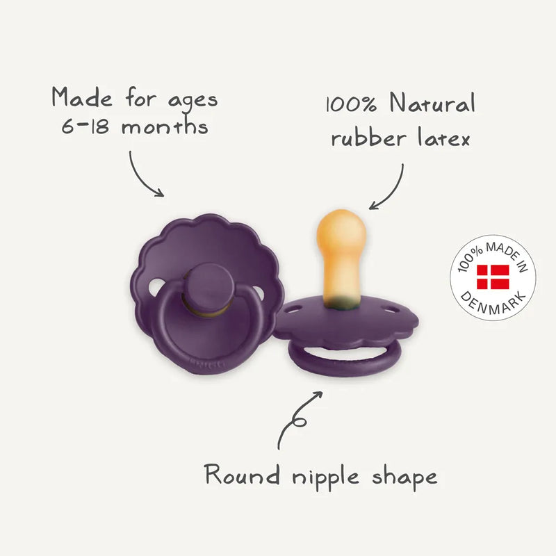 Биберонът-залъгалка FRIGG Daisy с вълнообразни ръбове, наподобяващи венчелистчета на цвете, е същинска изява на елегантен дизайн. Цветните и модерни детайли веднага привличат вниманието на всяка стилна майка, която държи на класическия дизайн с модерен акцент при избора на бебешки аксесоари.