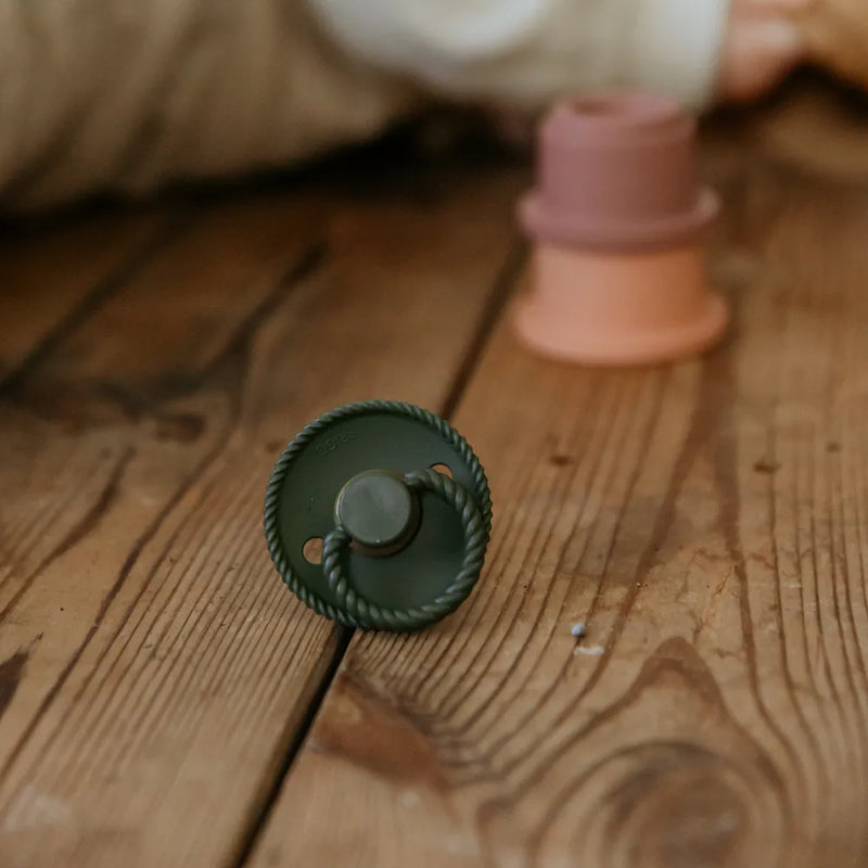 Биберонът FRIGG Rope е създаден с мисъл за надеждността и стабилността – като въже, което носи сигурност в несигурността и сила пред предизвикателствата. Тънко въже обгръща щита, а по-дебело оформя дръжката, символизирайки силната и неразрушима връзка между майка и дете – подобно на пъпната връв.