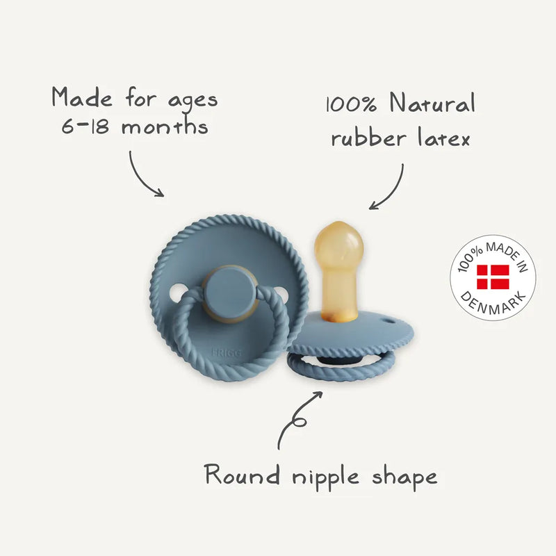 FRIGG Rope е с кръгъл биберон, наподобяващ формата и усещането при кърмене. Тази форма насърчава естествените движения на езика и прави прехода от гърда към залъгалка по-лесен. Препоръчва се от педиатрични хиропрактици и родилни центрове в Дания.