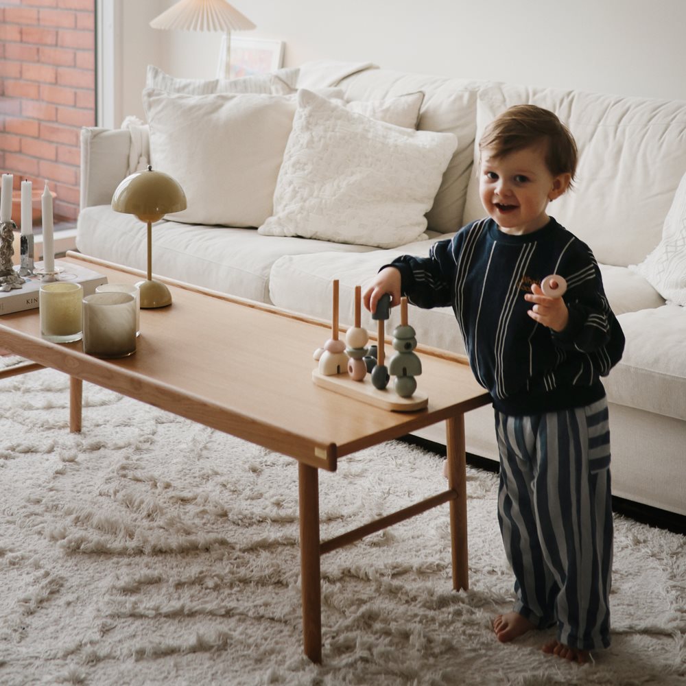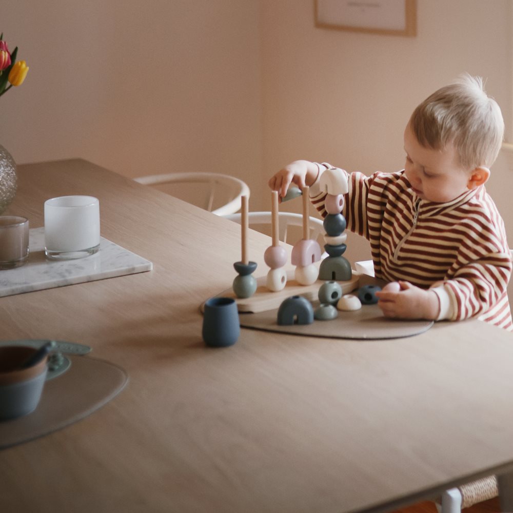 Открийте света на формите и цветовете с дървения сортер Mushie Multi Shape Stacker!