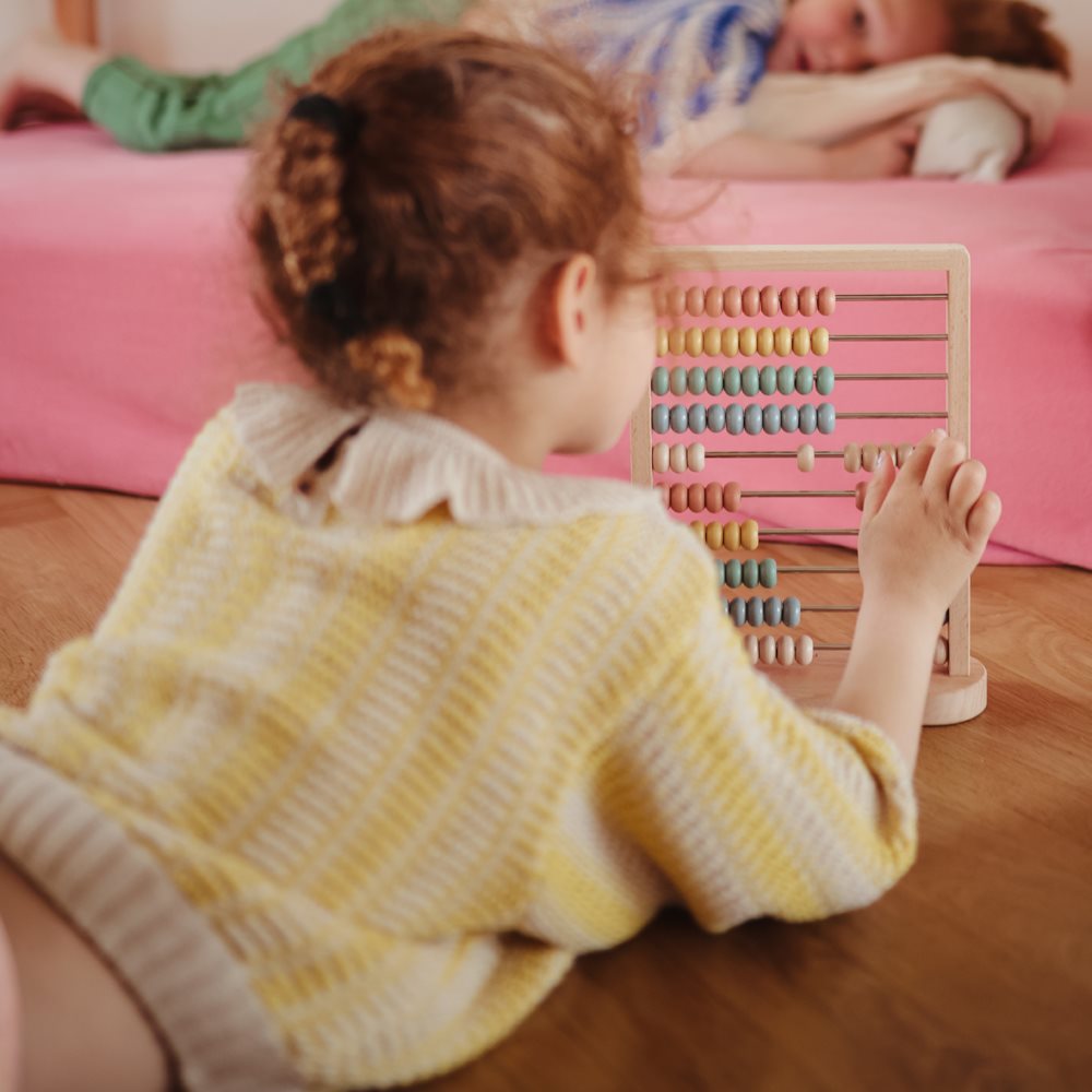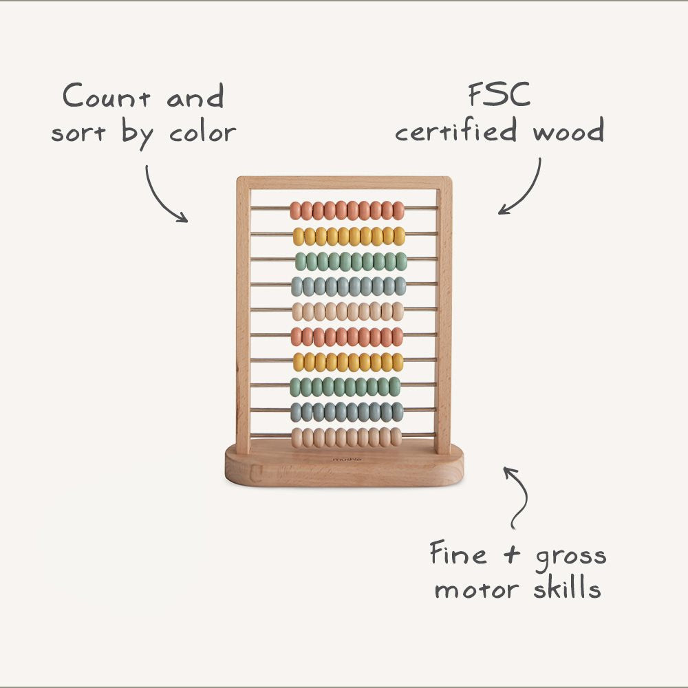 Внесете класически образователен елемент в детската стая или игралния кът с това красиво дървено сметало Mushie.