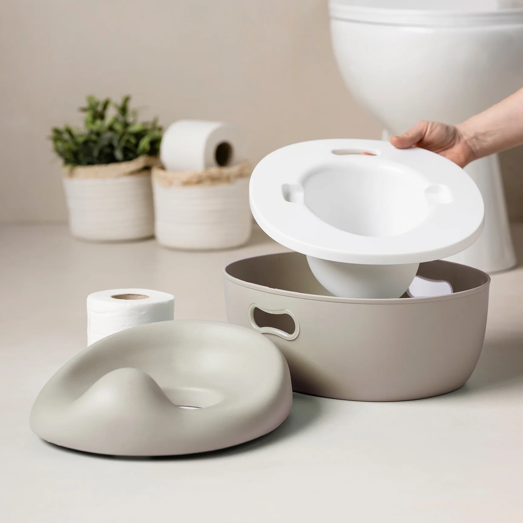 Открийте Potty, иновативното гърне, което расте заедно с вашето дете! Създадено, за да направи приучаването към гърне лесно, удобно и приятно, този продукт съчетава три функции в едно. Potty започва като гърне за най-малките и постепенно се трансформира в адаптер за тоалетна седалка с практична стъпка.