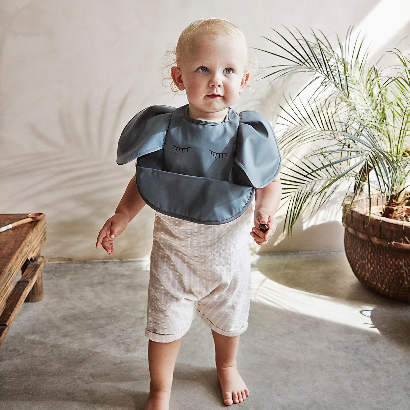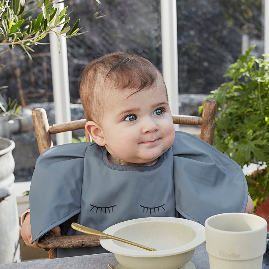 Нашите красиво проектирани бебешки лигавници бързо се превръщат в любим избор на много родители. Благодарение на сертифицирания по Oeko-Tex бързосъхнещ материал, перфектното прилягане и вниманието към всеки детайл – не е изненада защо. Достатъчно е просто да го изплакнете или избършете след всяка употреба, и след няколко минути е отново сух и готов за следващото хранене. Широката форма покрива раменете и гърдите, а гъвкавият преден джоб събира всички трохи и капки – по-малко бърсане на пода! Лигавникът се закопчава с мека велкро лепенка около врата, която позволява лесно регулиране на ширината. Многофункционален и практичен, но най-важното – вашето мъниче ще изглежда чудесно, дори когато прави бъркотия в кухнята.