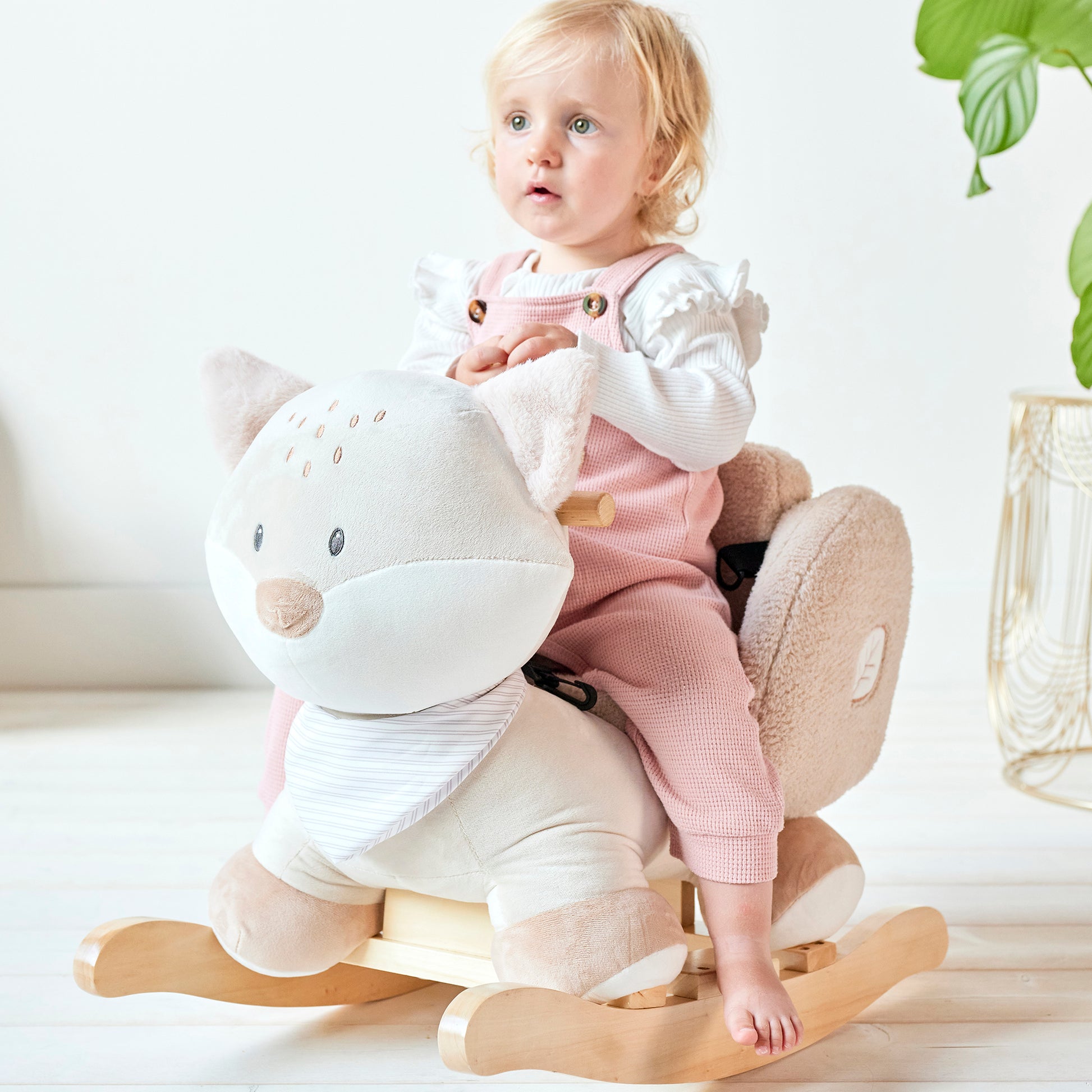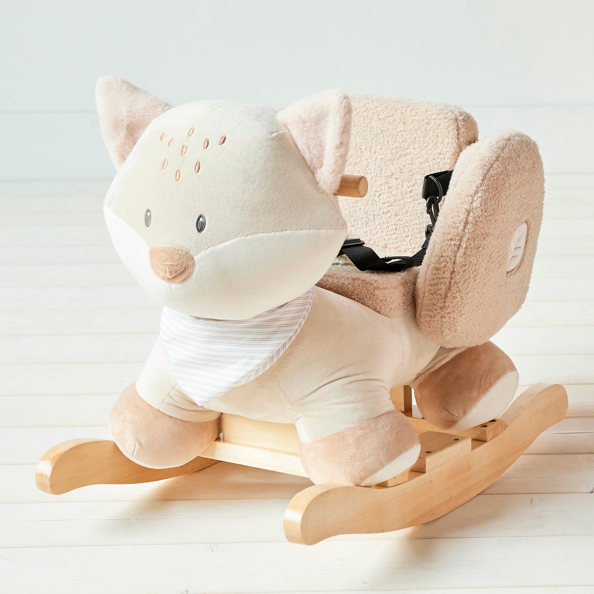 Люлееща играчка „Fox е идеалният приятел за игра на вашето дете и истинска атракция във всяка бебешка стая. Люлеещото се животинче разполага с мека подплатена седалка и странични опори. Дървените дръжки са проектирани за малки ръчички. Умилителната му физиономия и пухкавите уши радват любопитните детски пръстчета. Широката основа и поставките за крачета осигуряват допълнителна стабилност. Заедно със слончето детето ви ще се наслаждава часове наред на люлеене и ще тренира баланса си по забавен начин.