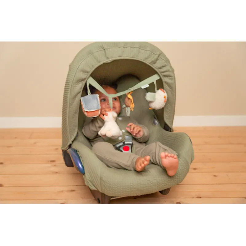 Направете всяко пътуване по-забавно с меката активна играчка от колекцията Little Farm. Лесно се прикрепя към количка или столче за кола и осигурява разнообразни игри и сетивни преживявания в движение.