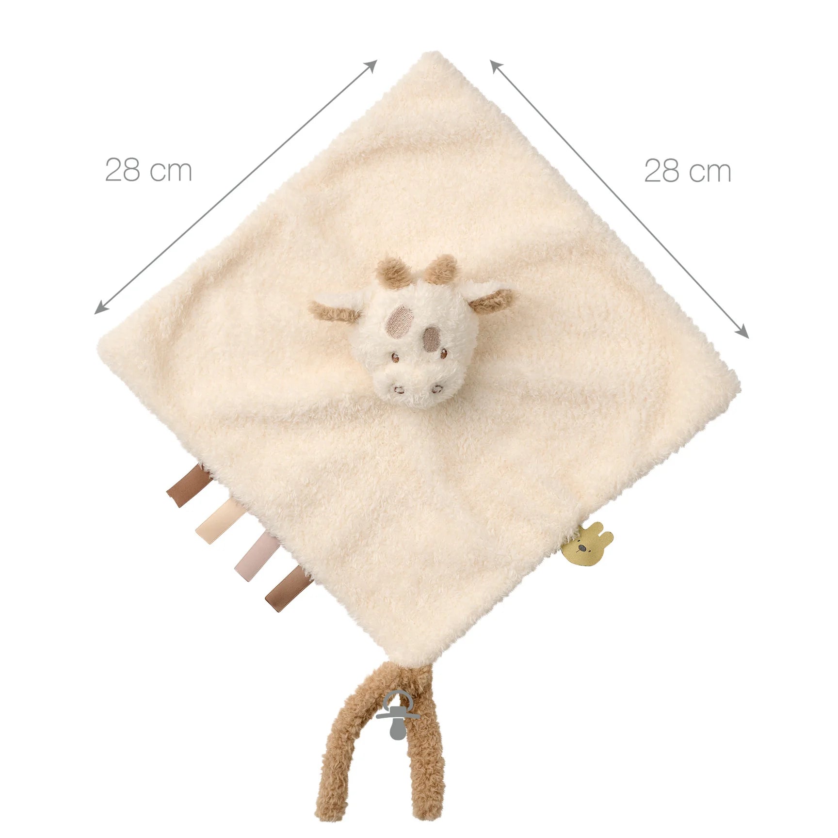 Мекото одеялце предлага много възможности за хващане – главичката, ушичките и цветните етикетчета насърчават развитието на фината моторика. Освен това е включено удобно закрепване за биберон, за да бъде винаги под ръка.