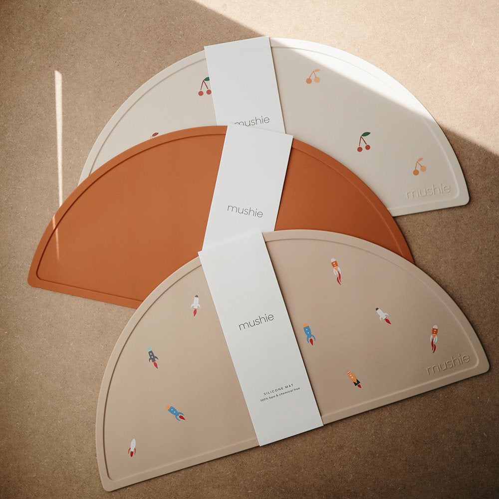 Поддържайте вашето мъниче и масата чисти с красивите и цветни силиконови подложки Mushie. Те не само предпазват повърхността от разсипване, но и създават стилна визия, особено когато се комбинират със съдове в подходящи цветове от колекцията Mushie.